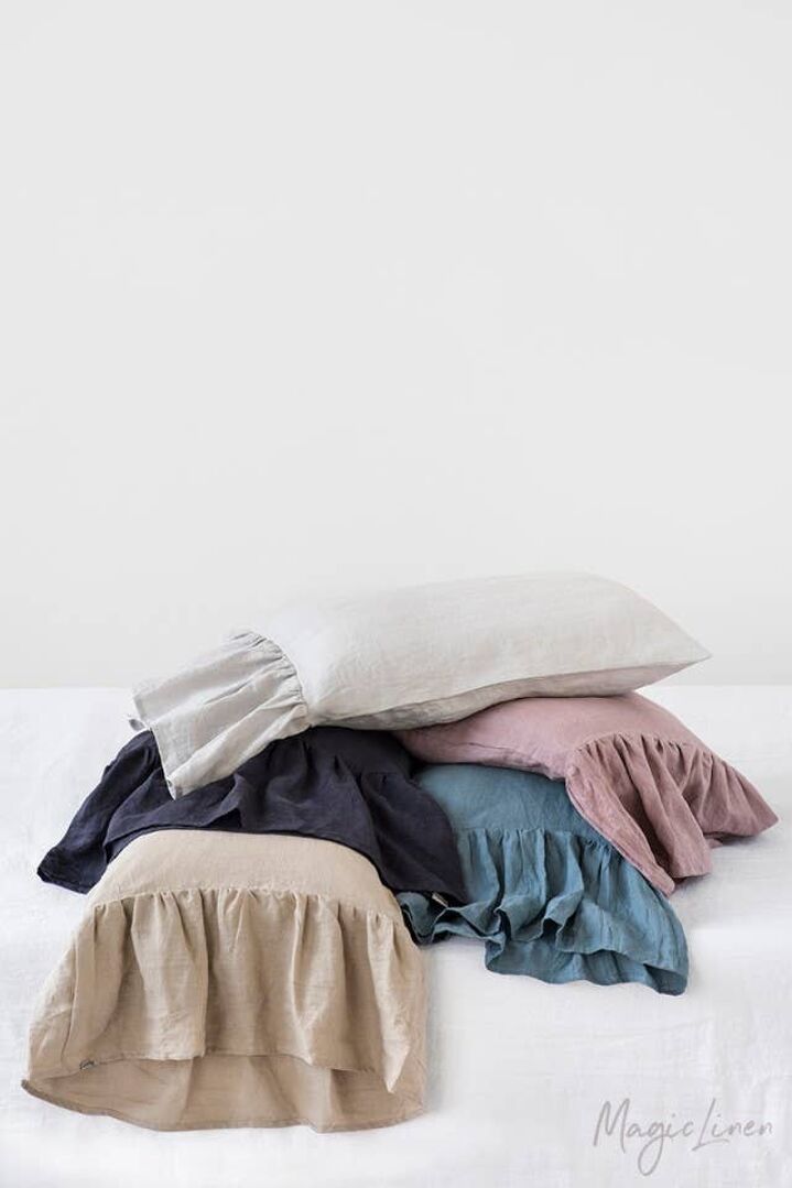 Rehaussez votre literie avec cette taie d'oreiller en lin avec un long volant sirène sur un côté. Disponible dans toutes les couleurs MagicLinen, le volant d'env. 10 "/ 25 cm crée un look unique lorsqu'il est combiné avec une housse de couette à volants ou mélangé avec d'autres articles. Ajoutez une touche de fantaisie à votre espace de sommeil.