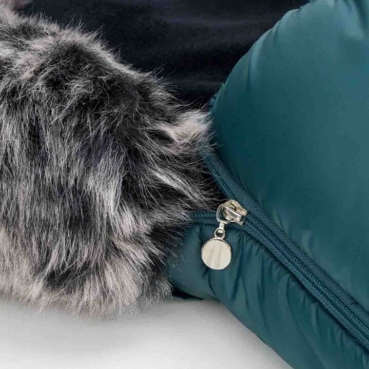Son design tendance, avec des détails matelassés et un couvre-chef doté d'une fausse fourrure amovible de qualité, ainsi qu'un dispositif de régulation de la température, font de cette chancelière un indispensable haut de gamme pour les températures hivernales.