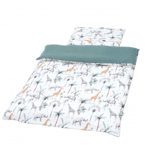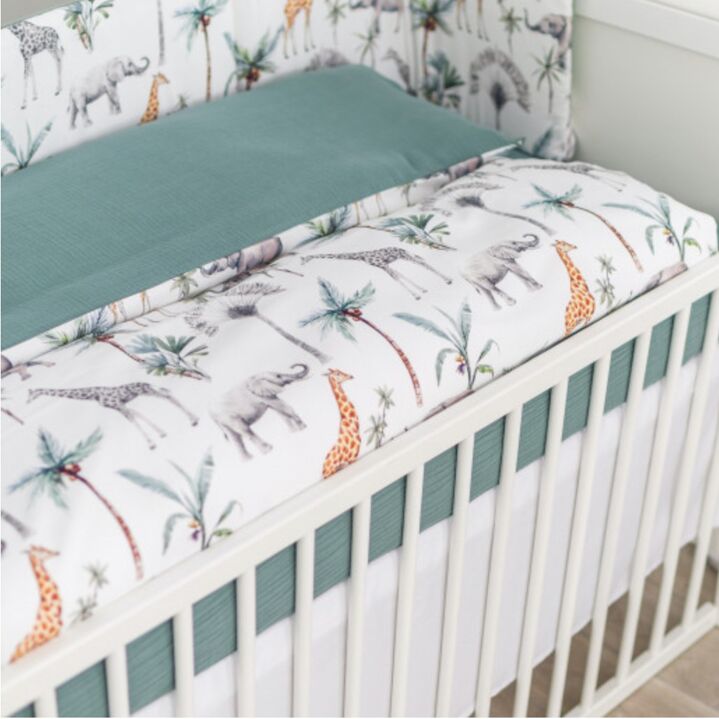 Offrez à votre bébé un sommeil douillet avec la parure de lit Safari. Imprimée d'animaux sauvages et de palmiers, cette parure en coton et en gaze de coton sera parfaite pour accompagner les rêves de votre petit aventurier.