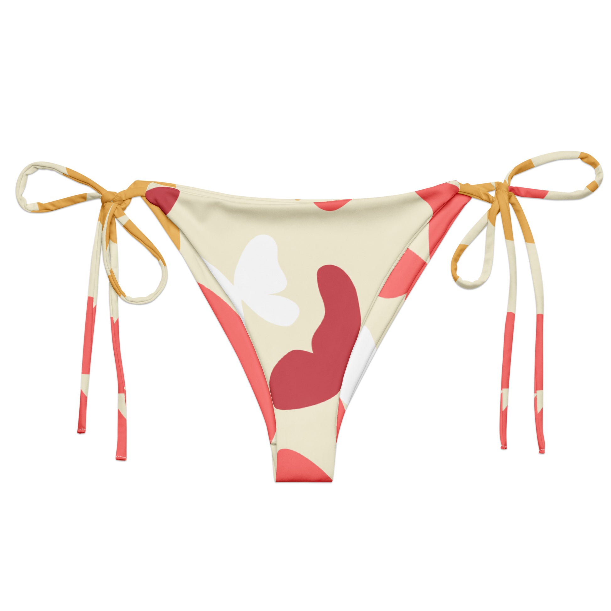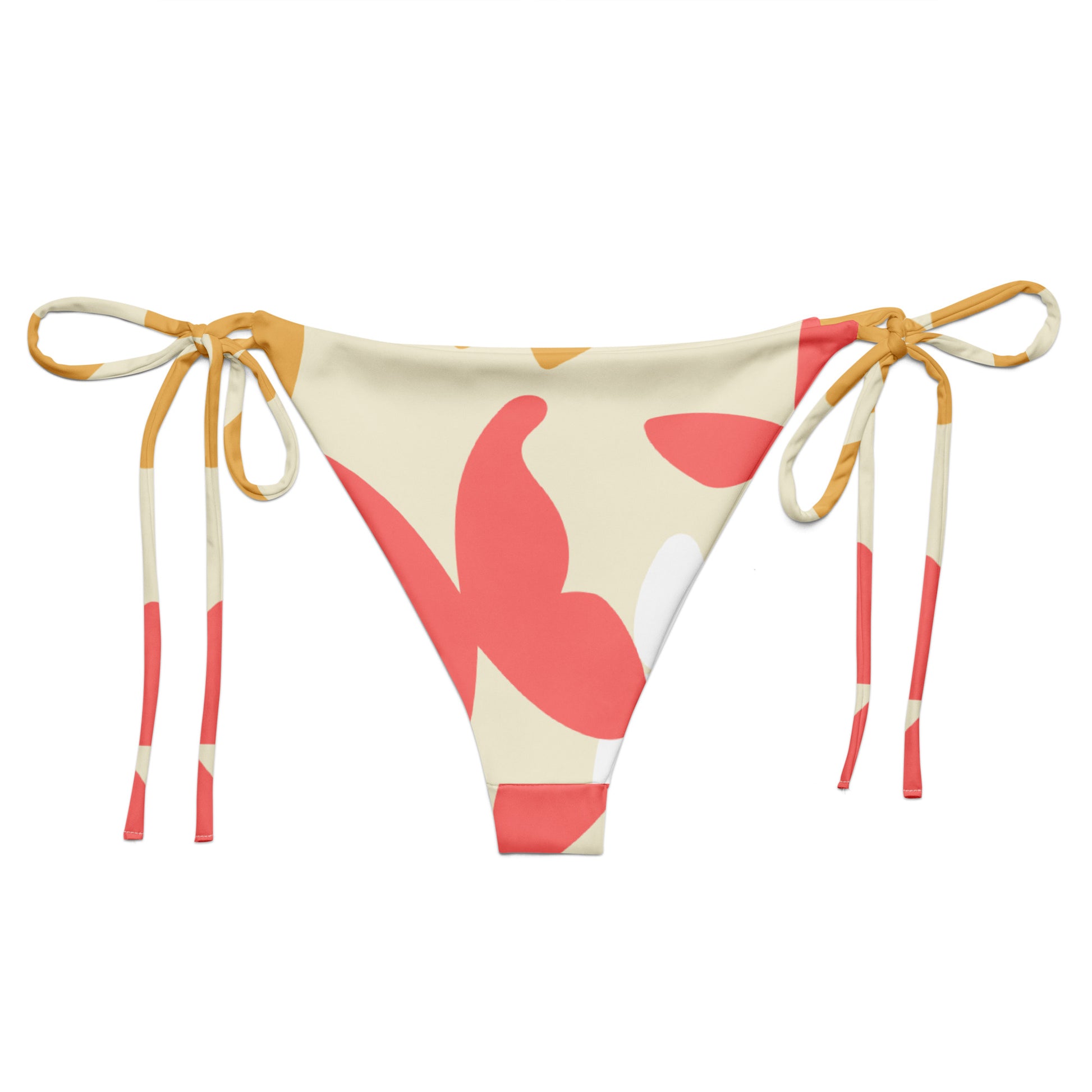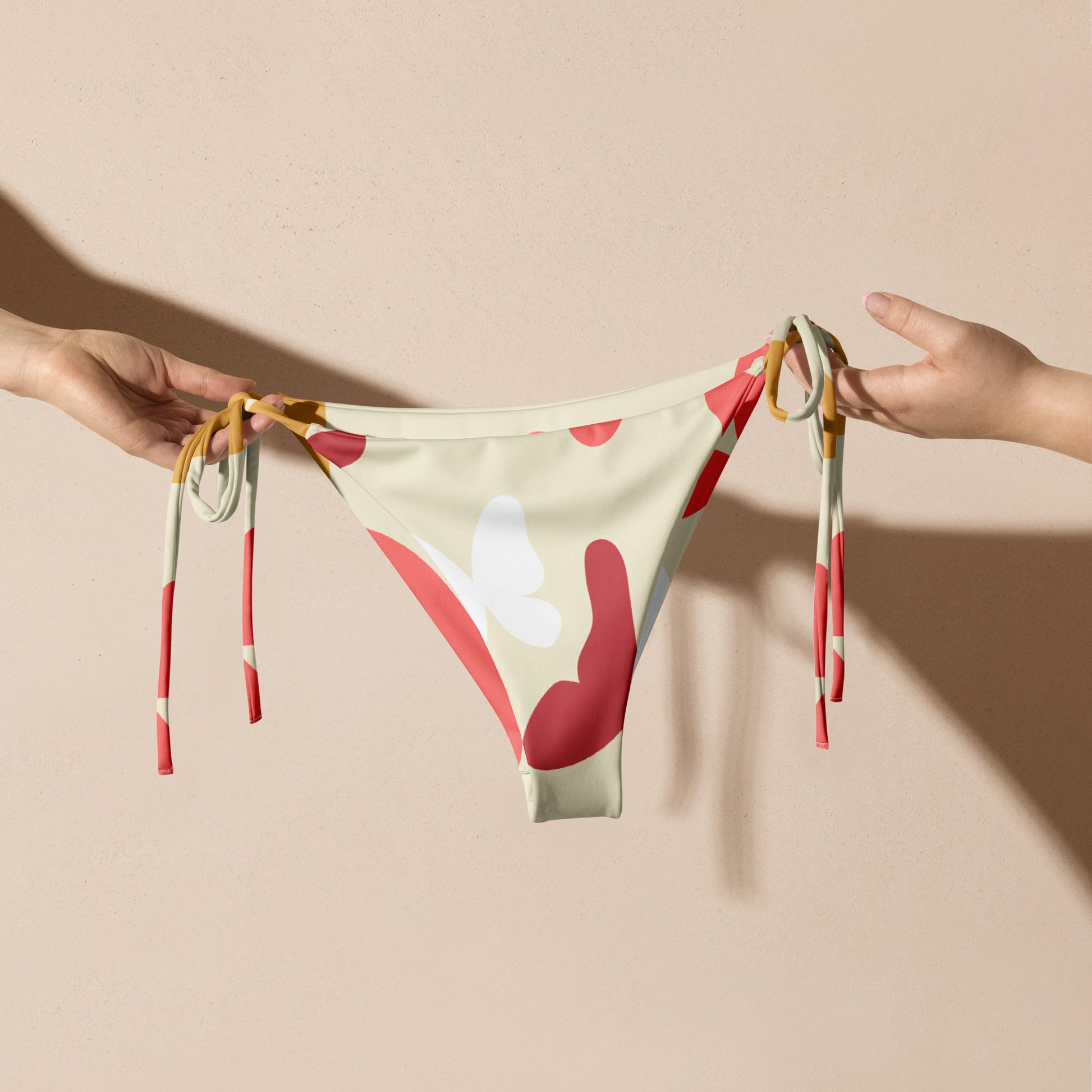 - Pour que votre bas de bikini à cordon recyclé orné d'une impression all over dure plus longtemps, rincez-le soigneusement après chaque utilisation et débarrassez-le de tout résidu de chlore/sel.