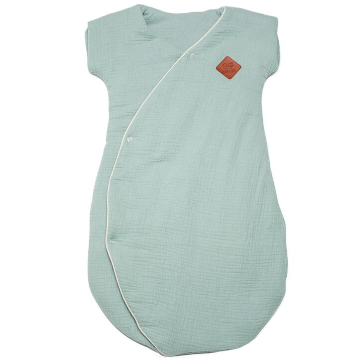 Offrez à votre bébé un sommeil paisible avec cette gigoteuse turbulette en coton et gaze de coton, 100% made in France. Son léger garnissage lui permet d'être utilisée en toutes saisons, offrant une température idéale entre 17 et 20 °C (TOG 2). La gaze de coton douce et légère offre un toucher soyeux et une grande respirabilité. L'indispensable pour un sommeil confortable : la gigoteuse kimono Jeanne.