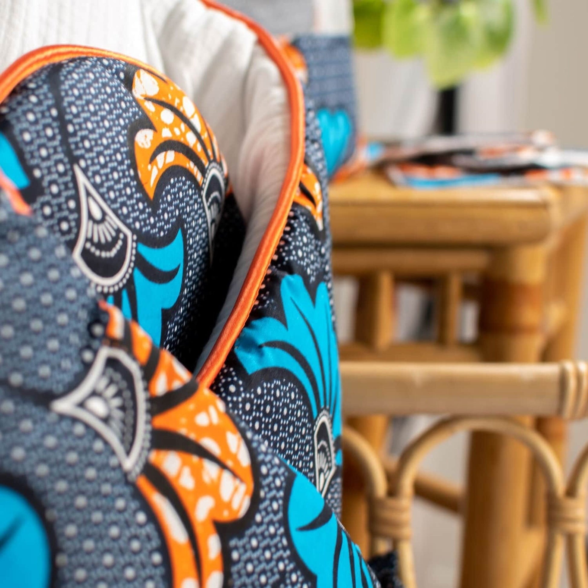 Plongez votre bébé dans la culture africaine avec notre gigoteuse évolutive en tissu Wax bleu, tendance et urbain. L'imprimé ethnique aux fleurs de mariage et fleurs de lys donnera à votre enfant un doux sommeil et le style d'un créateur de mode. Un nid d'ange moderne et intemporel pour de beaux rêves.