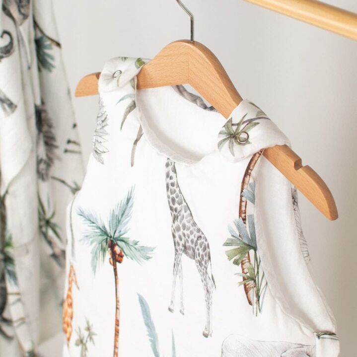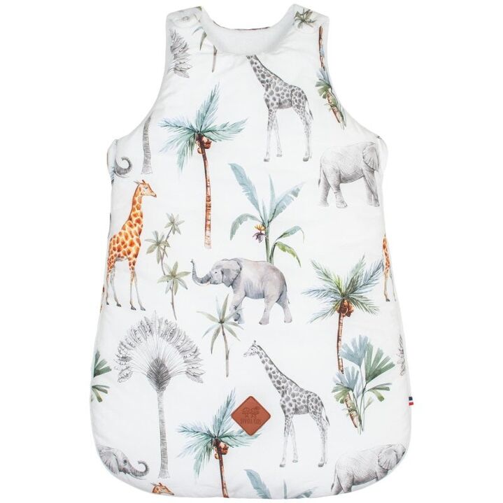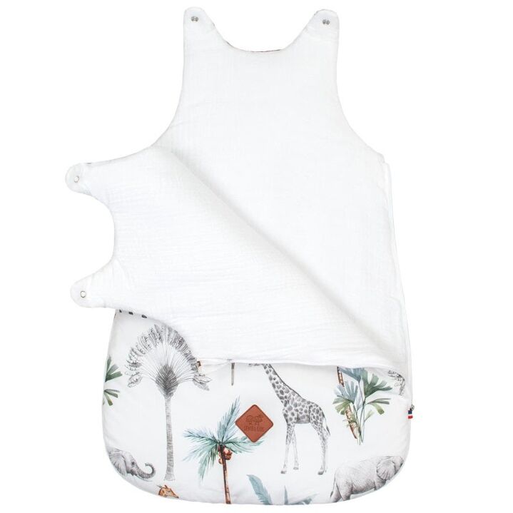 La gigoteuse turbulette Safari sans manches en coton est idéale pour l'été. Son design élégant de la Collection Safari et son imprimé jungle offrent de belles aventures à bébé pendant ses douces nuits. Fabriquée en France avec des imprimés animaliers, elle assure un sommeil paisible et confortable.