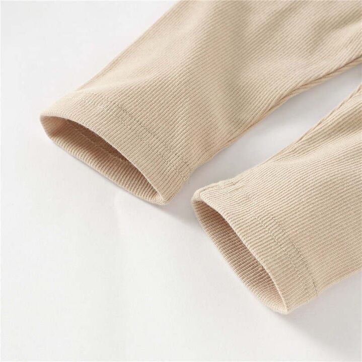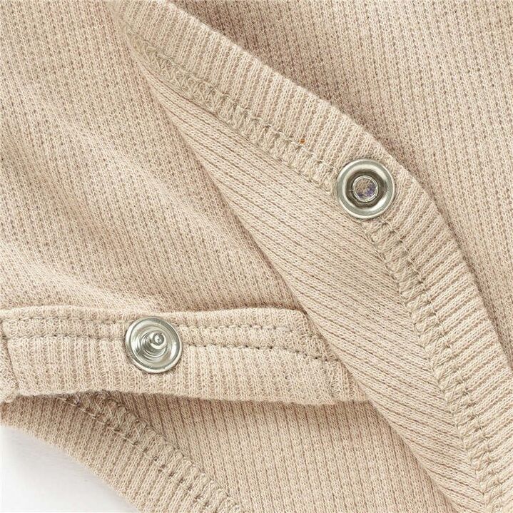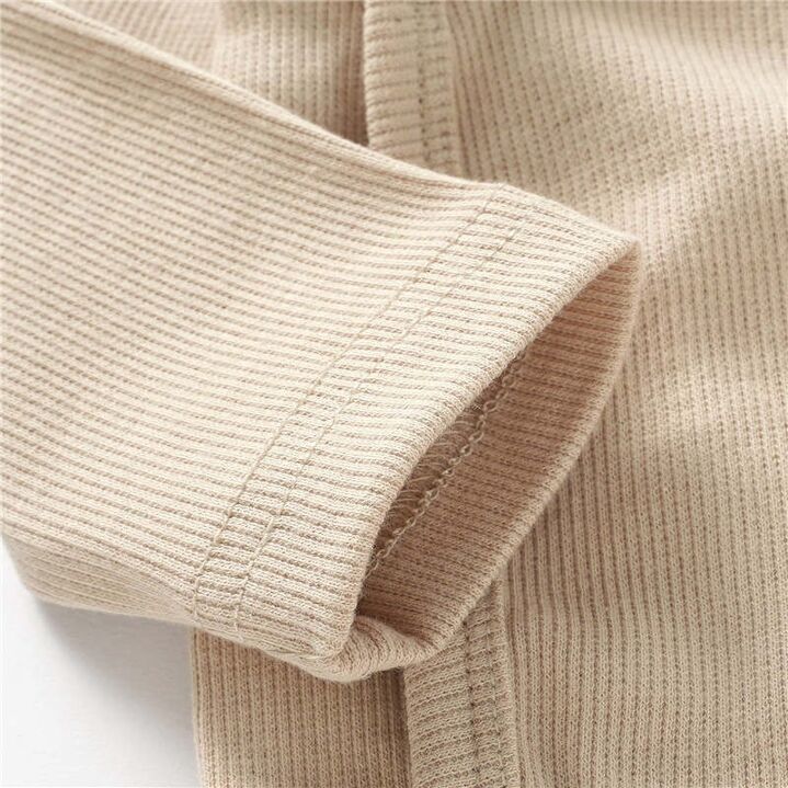 Ensemble composé d'un body à manches longues, d'un legging et d'un bonnet en coton côtelé doux bio. Comprend un body cache-cœur avec des boutons-pression sur les côtés et à l'entrejambe pour un déshabillage facile. Legging avec large ceinture rabattable.