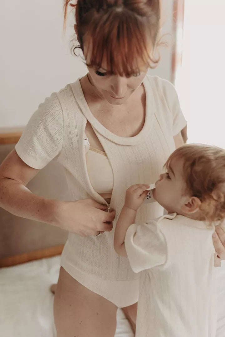 Nous avons alors décidé de réinventer cette pièce, ô combien féminine et iconique, en une version spécialement adaptée à l’allaitement !