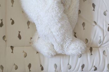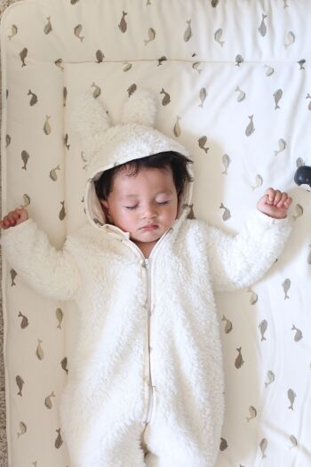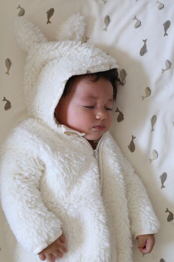 Le Kidbombi-pilote en mouton de polyester est le choix parfait pour garder votre enfant au chaud et confortable cet hiver. Avec sa doublure en coton imprimé Baleineaux thermorégulatrice, une fermeture éclair tout du long avec protection au menton, des pieds et une capuche à oreilles, ce combi-pilote est à la fois pratique et amusant. Facile à entretenir avec un lavage à 30°, il est également certifié Oeko-Tex Standard 100© pour un choix éco-responsable. Fabriqué au Portugal.