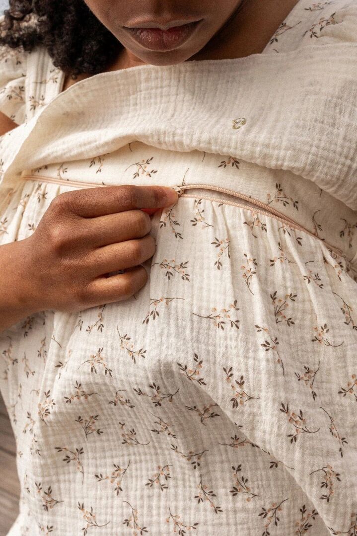 Ouvertures Invisibles : Conformément à la règle d’or de You & Milk, les ouvertures pour allaiter sont dissimulées sous un délicat volant à l'avant, vous permettant d'allaiter en toute discrétion. Personne ne devinera que sous ce volant se cachent les ouvertures magiques pour accéder à la "milk cantine" !