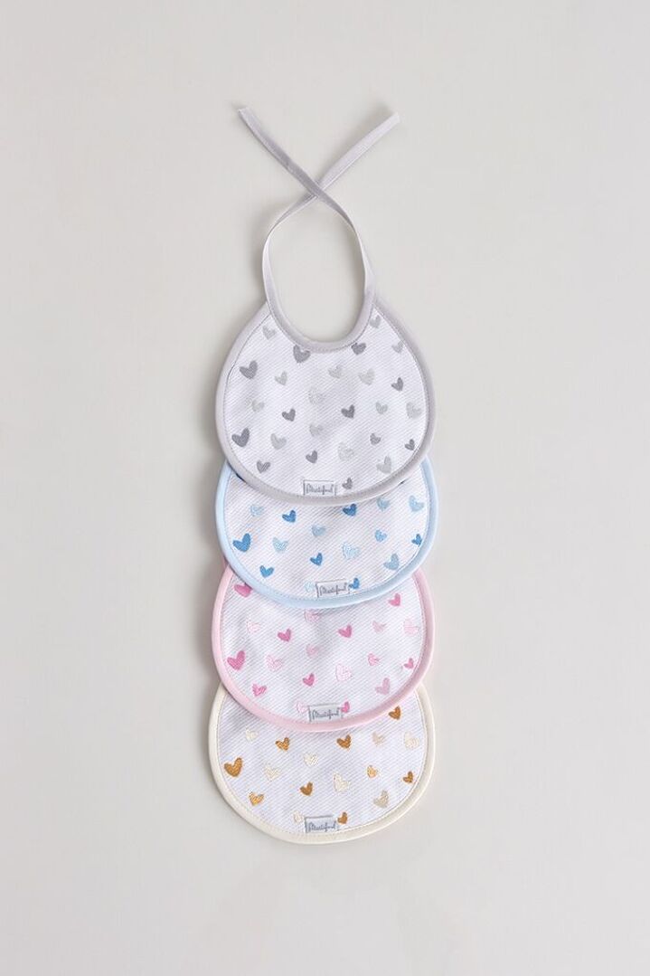 Bavoirs brodés avec des cœurs colorés réalisés en tissu coton et bordure de couleurs assorties.