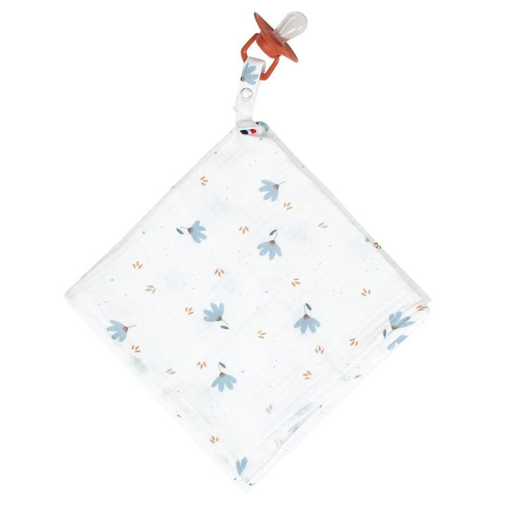Le doudou attache tétine en gaze de coton Bleuet offre une véritable douceur pour votre bébé. Réconfortant et apaisant, il aide à calmer et cajoler votre bébé durant ses moments de fatigue.