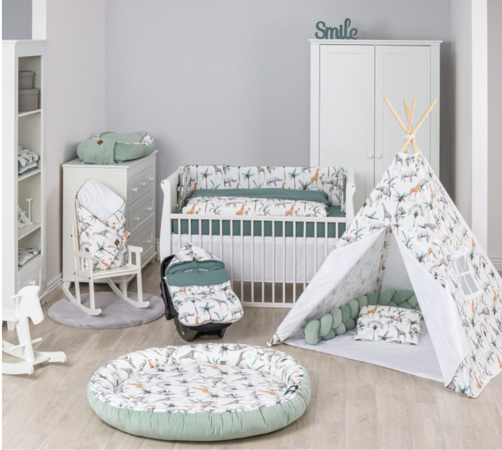 Découvrez la gigoteuse d'emmaillotage Safari pour votre bébé ! Son design coloré sur le thème de la jungle savane ajoutera une touche moderne à ses nuits. Avec un intérieur en minky ultra doux et un liseré vert eucalyptus, cette gigoteuse garantit un confort optimal pour un sommeil paisible. Parfait pour des aventures douces et sécurisées.