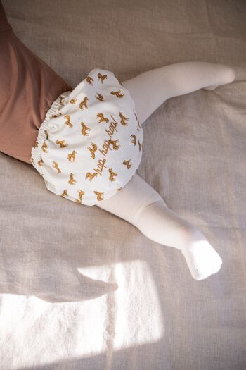 Le bloomercouche Kidbouvre-couche Bloomer Mike est parfait pour votre bébé avec son imprimé zèbre amusant et sa doublure en coton doux. La broderie "Hop, Hop, Hop" ajoute une touche ludique. Certifié Oeko-Tex Standard 100© et facile à entretenir, il est également écologique et fabriqué au Portugal. Disponible en différentes tailles pour accompagner la croissance de votre enfant.
