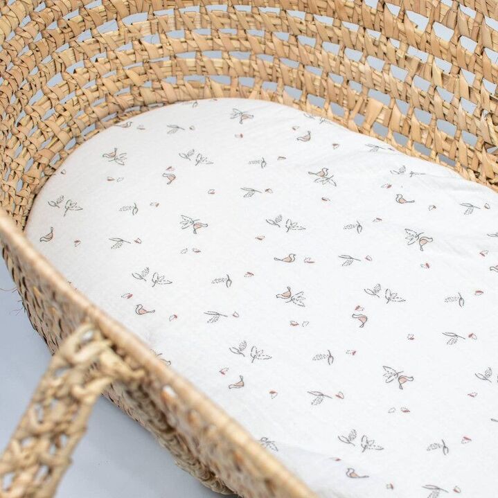 Enveloppez votre bébé de douceur avec notre drap housse pour couffin en coton certifié Oeko-Tex. Avec des motifs d'oies et de plantes minimalistes, ce drap housse ajoute un charme champêtre à la chambre de votre enfant. Fabriqué en France avec une bande élastique robuste, il assure un maintien parfait sur les matelas de couffins standard.
