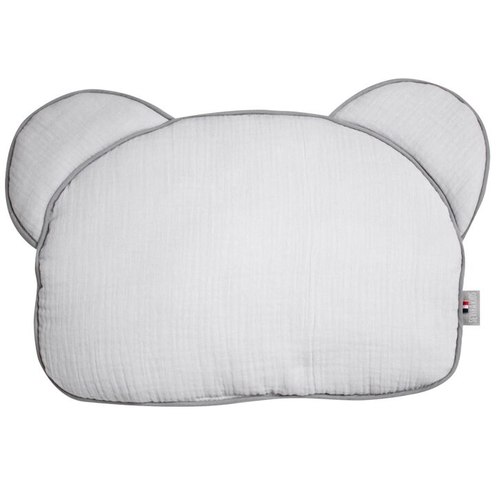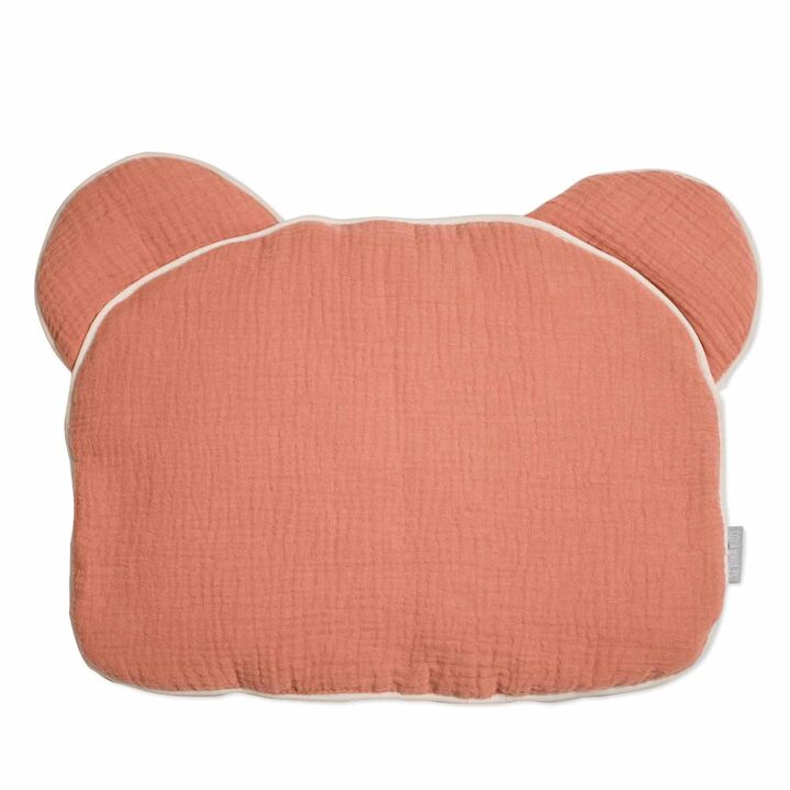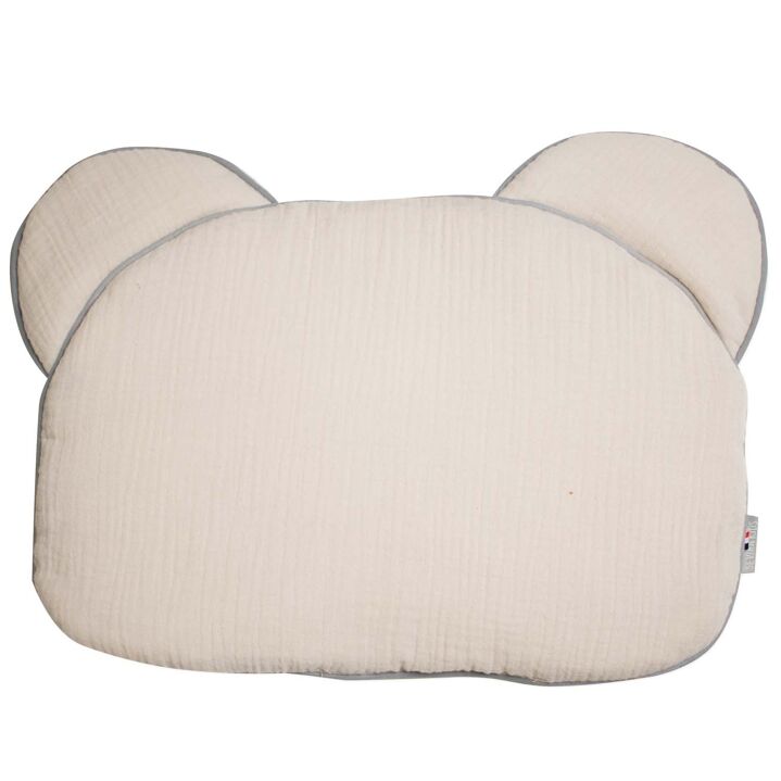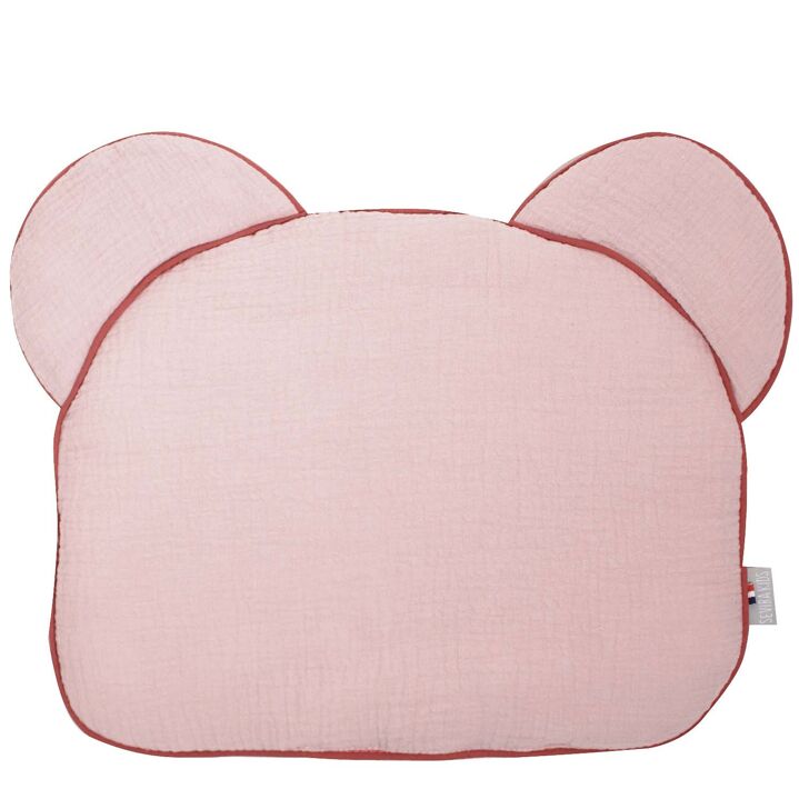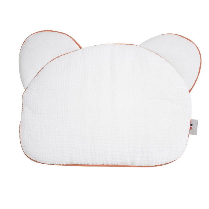 Découvrez notre coussin ourson pour bébé extra plat Jeanne, en double gaze de coton, certifié Oeko-Tex et fabriqué en France.