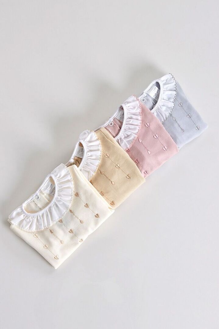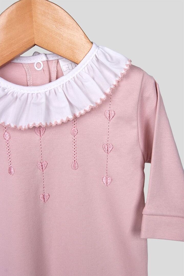 Kidbrenouillère en coton avec ouverture au dos et cœurs brodés