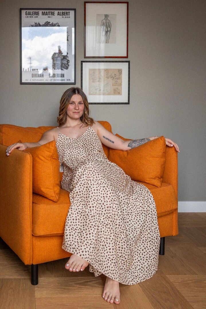 Noémie mesure 1,66 m et porte la robe d’allaitement Summ’her Mama Graou en taille S.