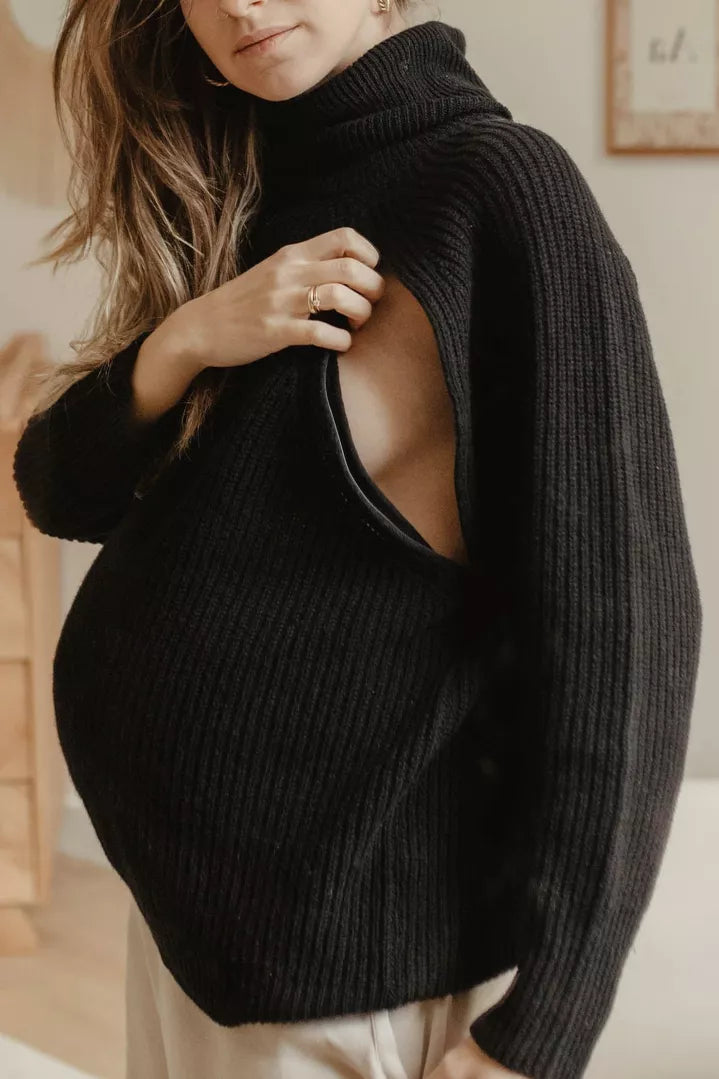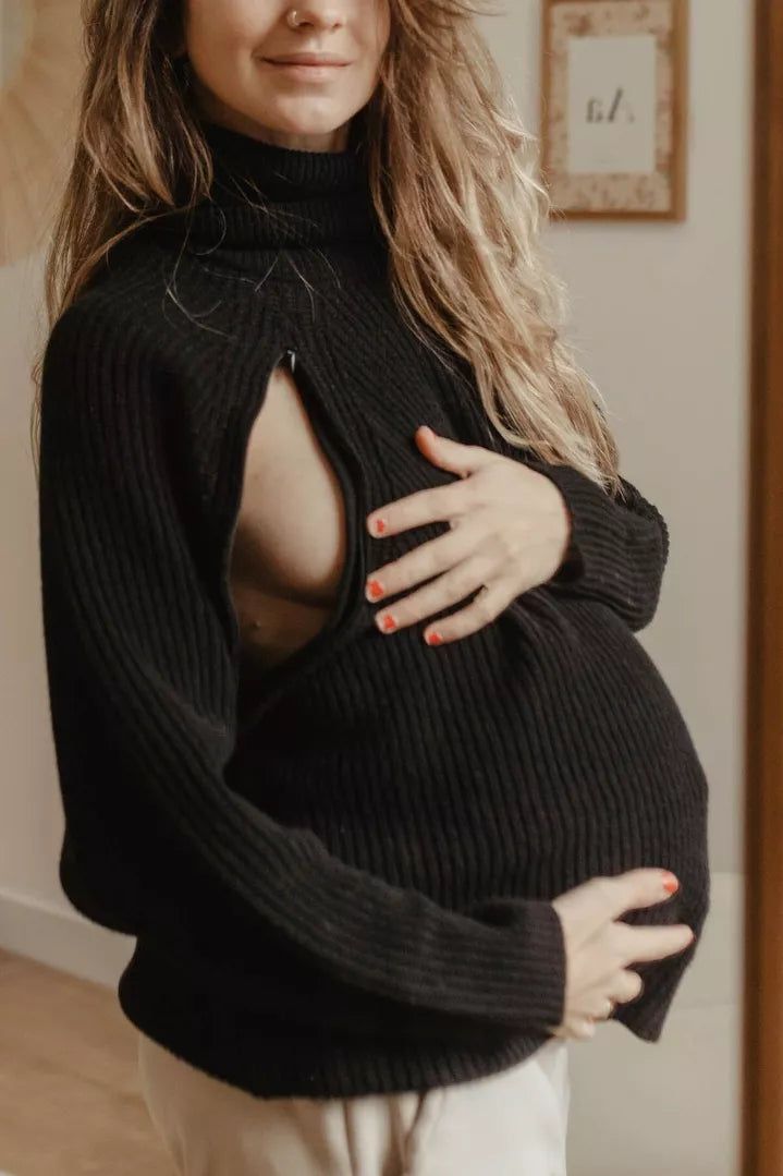 Qui n'a jamais rêvé de se blottir dans un pull tout doux qui ne pique pas ? Le pull d'allaitement Sweet Mama est la pièce chaude et confortable qu'il vous faut, avec des ouvertures pratiques et invisibles (essayez de les repérer au premier coup d'œil...).